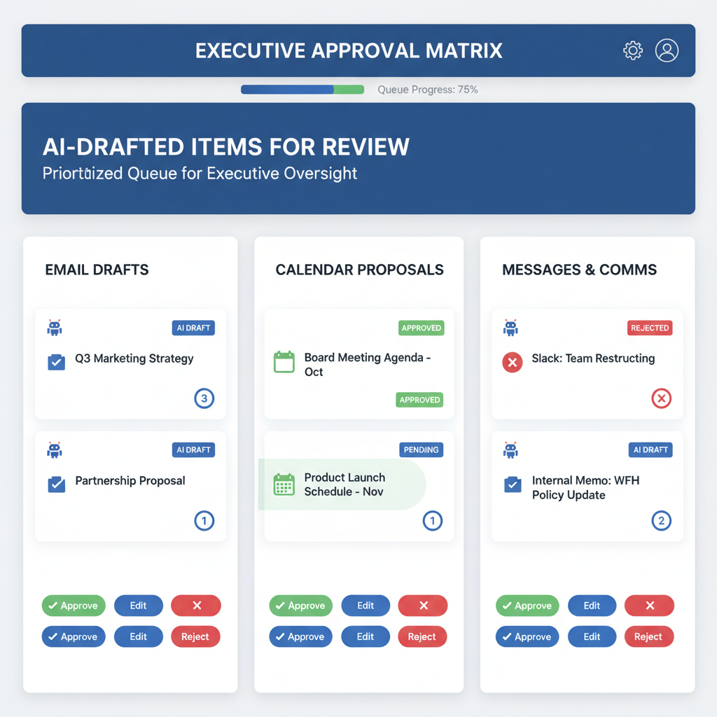 One of the biggest concerns executives have about AI assistants is losing control. What if the AI sends the wrong email? What if it makes a scheduling mistake? Approval-first workflows solve this by ensuring nothing happens without your explicit sign-off. This control is especially important for security and compliance in enterprise environments.
